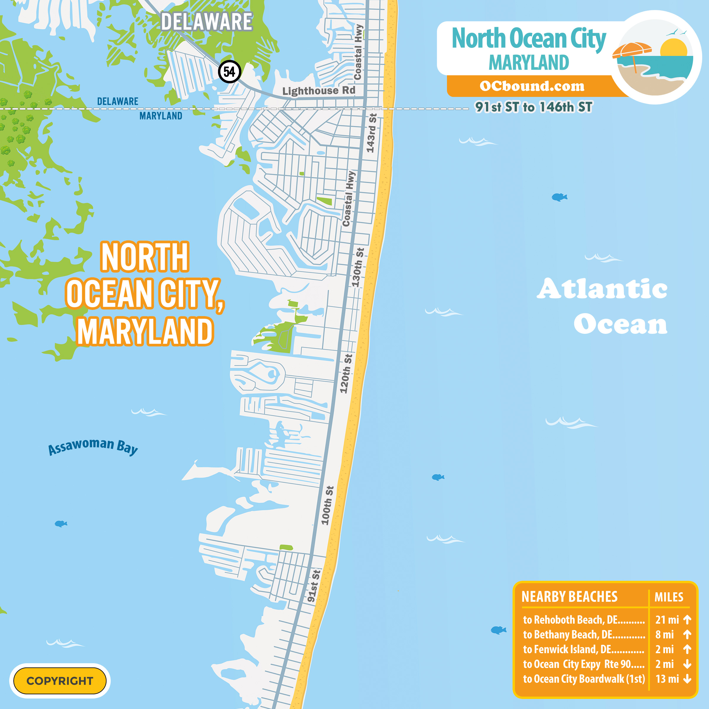 Map of North Ocean City, Maryland | 91st ST – 146th ST © OCbound.com